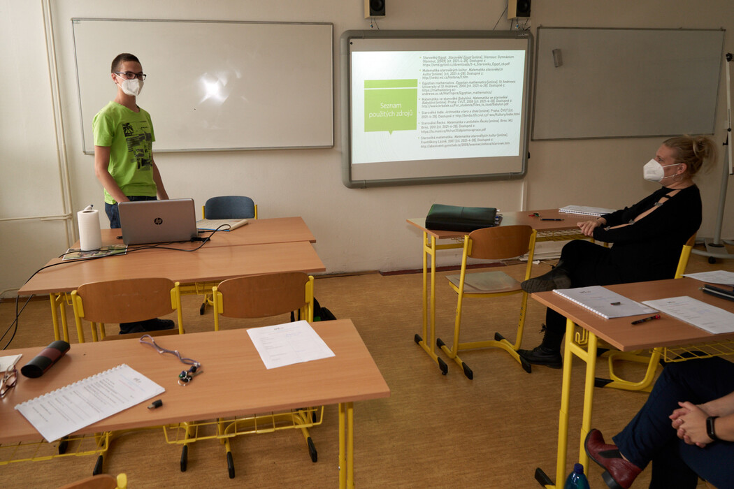 Na fotografiích vidíme záběry z letošních obhajob ročníkových prací, které proběhly 26. a 27. května 2021. Studující zde během svých prezentací představují svou ročníkovou práci tříčlenné komisi, skládající se z vyučujících daných oborů. Po skončení prezentace se student či studentka dozví, jak si při psaní ročníkové práce i při jejím prezentování vedli, případně kde se dopustili chyb, a nakonec odcházejí s celkovou známkou, která je jim zapsána i na vysvědčení.