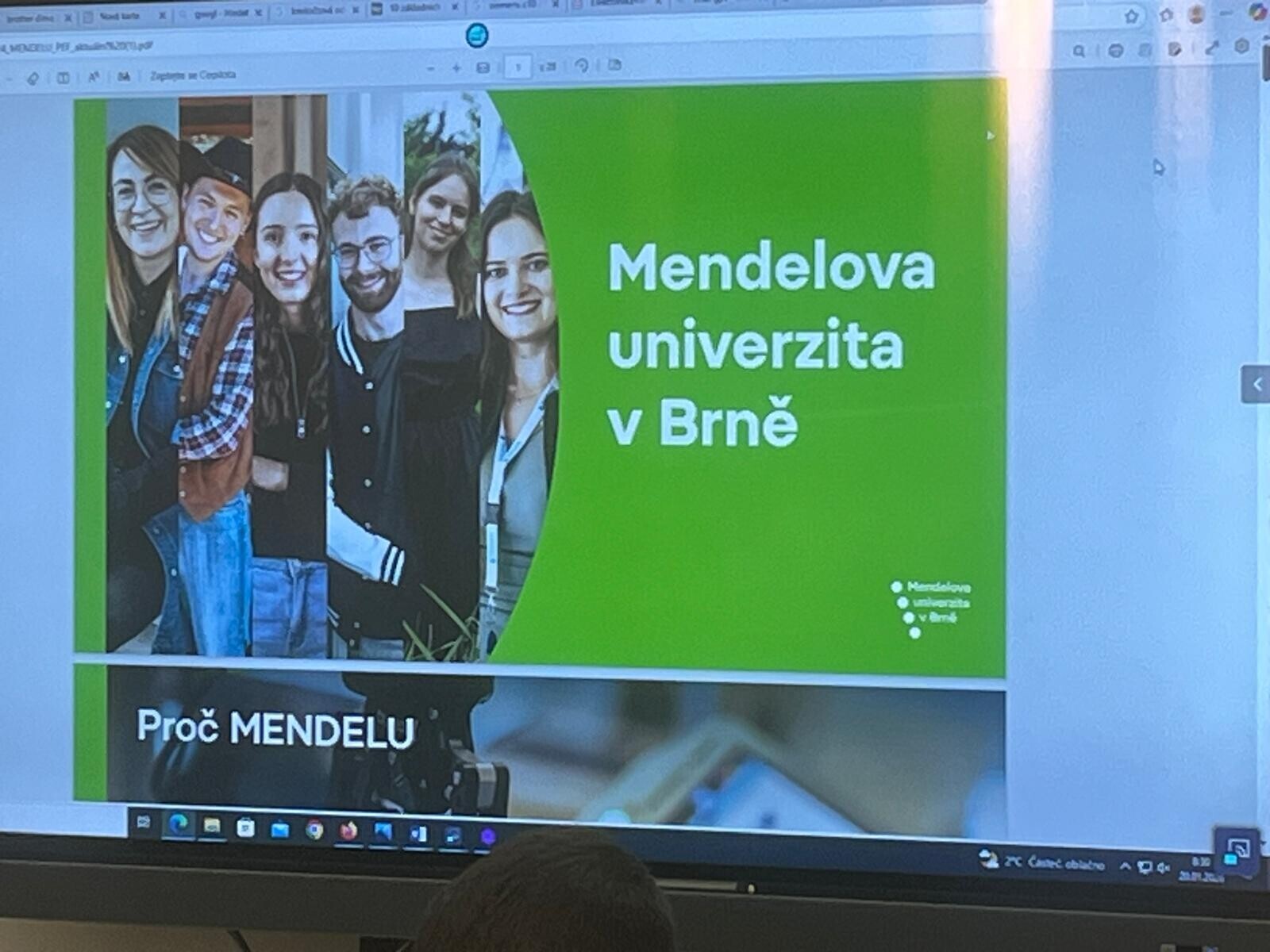 Dne 20. ledna 2026 proběhla na naší škole prezentace Mendelovy univerzity v Brně. Představení celé univerzity a zejména Provozně ekonomické fakulty se ujala Anička Pondělíčková, bývalá velmi úspěšná žačka naší školy, která je v současnosti studentkou 2. ročníku oboru Administrace IS/ICT.